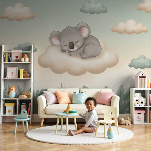 KidsWallUrinite u svijet mira s ovim papirnatom tapetom za bebe koji prikazuje ljupkog koalu kako spava na mekanoj oblačnoj podlozi. Okružen nježnim oblaci...