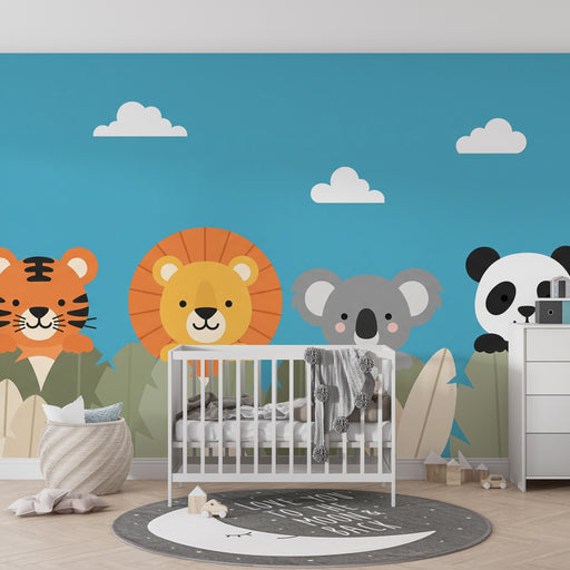 KidsWallTransformirajte dječju sobu u divlju avanturu s ovim papirnatim tapetama za djecu, šarenim i zabavnim, koje prikazuju veselu skupinu životinja iz d...