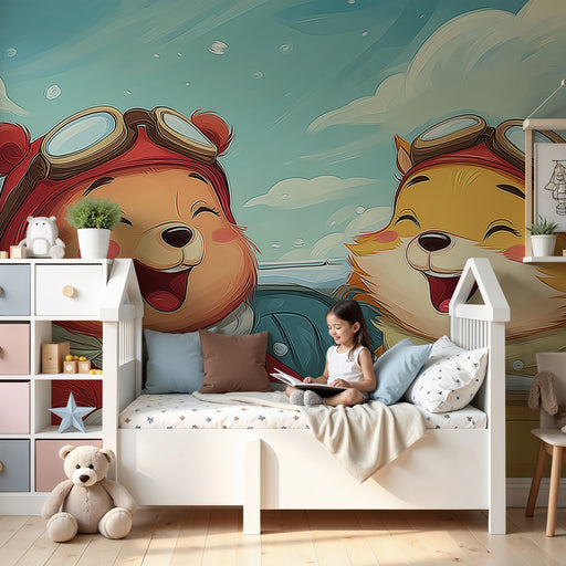 Prikaži sve detaljePapel de parede criança | Zračna avantura s medvjedićima pilotima
