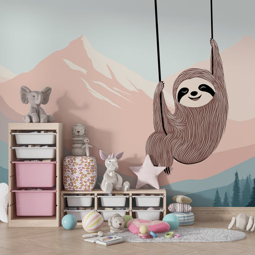 KidsWallTransformirajte dječju sobu u oazu mira s ovim tapetama za djecu koje prikazuju ljubaznog lenjivca kako se ljulja na konopu iznad prekrasnog planin...