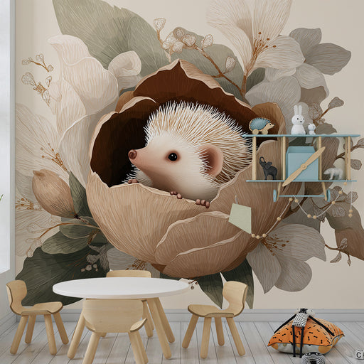 KidsWallStvorite nježan i umirujući svijet u dječjoj sobi sa ovim tapetama za bebe koje prikazuju simpatičnog ježa skrivenog u cvijetu. Ovaj očaravajući di...