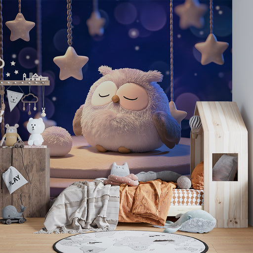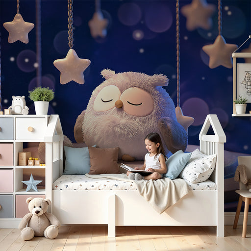 KidsWallTransformirajte sobu svog beba u meko gnijezdo s ovim papirnatom tapetom za bebe koji prikazuje preslatkog sovu koji spava, okružen sjajnim zvijezd...
