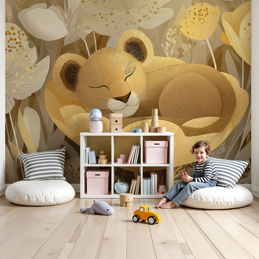 KidsWallTransformirajte sobu svog bebe u nježno utočište s ovim tapetom za bebe koji prikazuje slatko lavče mirno spavajući usred zlatnih cvjetova. Ovaj oč...