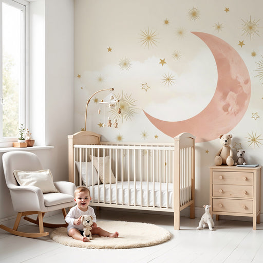 KidsWallPretvorite sobu svog beba u preslatko mjesto s ovim tapetama za bebe koje prikazuju osmijehom mjeseca koji visi na mekom oblaku. U umirujućem dekor...