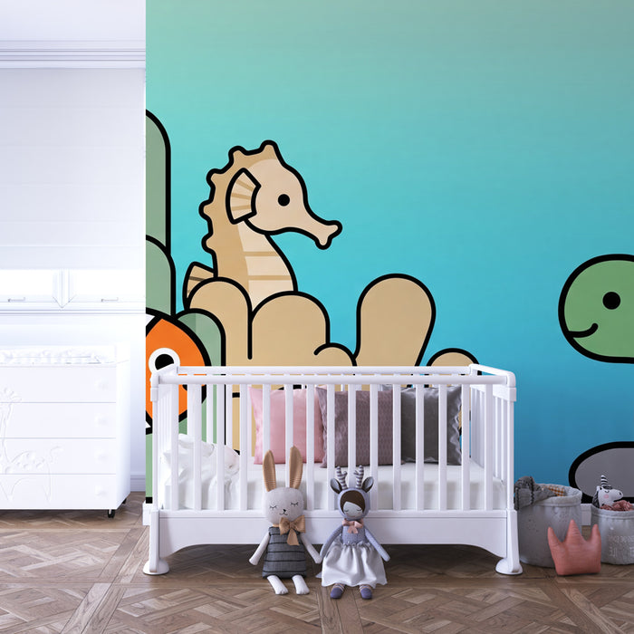 Zaronite se u uzbudljivi svijet vode s ovim tapetom za bebe koji će osvijetliti sobu vašeg malog. Ilustrirajući simpatična morska stvorenja poput veselog klovna ribe, zavodljivog konjića morskog i osmijehom obasjane kornjače, ovaj dekor obećava poticanje mašte dok donosi nježnost prostoru.