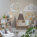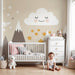 Neutralne i umirujuće nijanse bež, sive i bijele potiču mirno okruženje, idealno za spavanje i snove. Svaki detalj, od geometrijskih uzoraka planina do veselih izraza oblaka i mjeseca, osmišljen je kako bi potaknuo maštu malenih i donio dodir suvremenosti u dekoraciju.