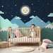 Odlično za bebinu sobu, ovaj tapet savršeno se uklapa s svijetlim drvenim namještajem i mekanim priborom, stvarajući topao i ugodan prostor. Osigurajte svom djetetu dekor koji ga poziva na sanjarenje i istraživanje čuda noći.