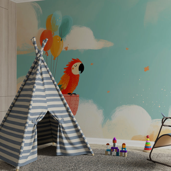 Dječja soba tapeta | Papiga u oblacima s balonima