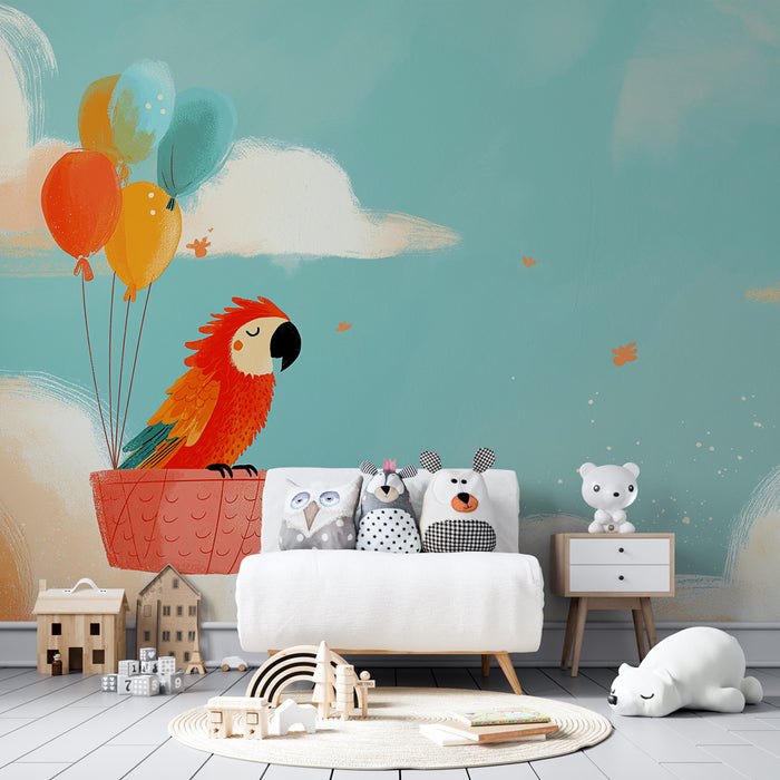 Povedite svoje dijete na fantastično putovanje s ovim tapetom za dječju sobu koji prikazuje slatkog papagaja kako lebdi među oblacima. S šarenim balonima kao prijevoznim sredstvom, ovaj jedinstveni dekor evocira lakoću i radost, potičući istovremeno maštu malih avanturista.