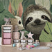Nježne zelene nijanse i delikatni detalji lišća stvaraju umirujuću atmosferu, idealnu za igru ili odmor. Svaki lik je pažljivo nacrtan, donoseći dodir radosti i nježnosti u prostoriju. Osmijeh lenjivca i velike uši zeca dodaju igru i toplinu.