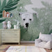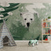 Redizajnirajte dječju sobu u pravi prirodni utočište s ovim tapetama za djecu koje prikazuju bijelog medvjeda koji izranja iz zelene šume. Okružen nježnim lišćem i papratima, ovaj znatiželjni medvjed poziva na avanturu i istraživanje.