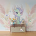 Dječja soba tapeta | Mali pastelni zmaj okružen perjem i šarenim mjehurićima