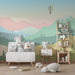 Papier de parede dječja soba | Pastelna planinska krajolika s šarenim balonom