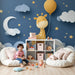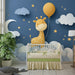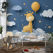 Papier de parede za dječju sobu | Sretna žirafa na zvjezdano nebo s oblacima