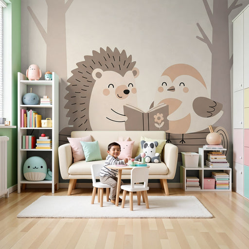 KidsWallUroneite svoje dijete u nježan i igrački svijet s ovim tapetama za djecu koje prikazuju ježa i pticu kako dijele trenutak čitanja pod drvećem. Ovi ...