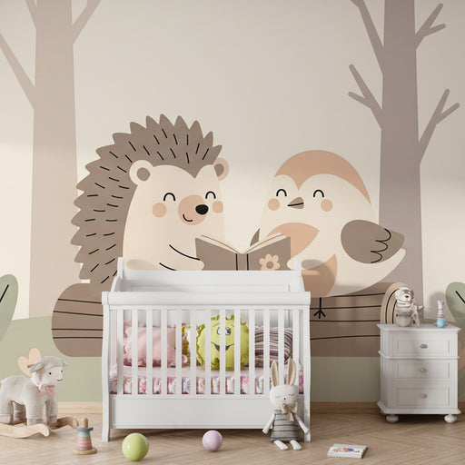 Prikaži sve detaljePapier de parede dječje sobe | Jež i ptica čitaju u šumi