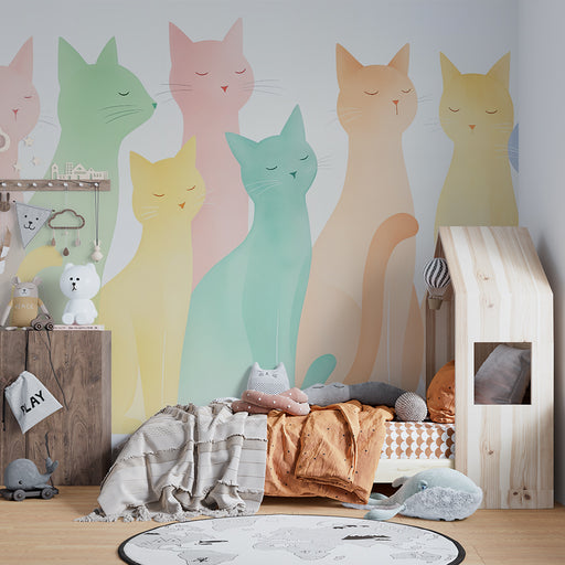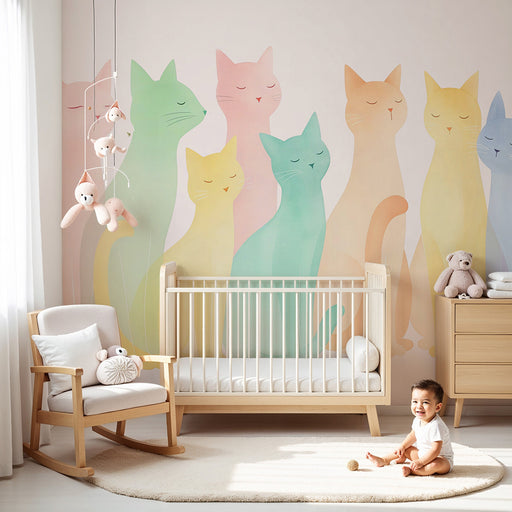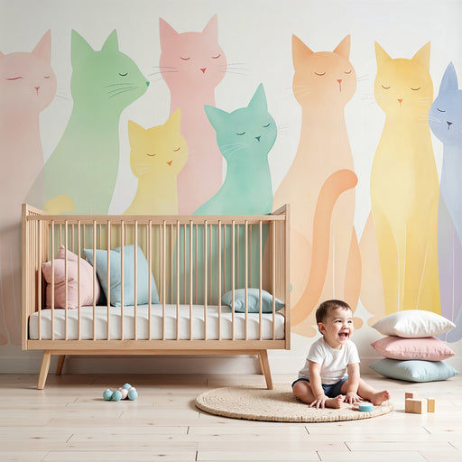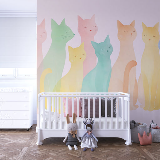 Prikaži sve detaljeTapet sa šarenim mačkama | Pastelni dizajn za dječju sobu
