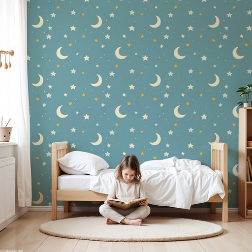 KidsWallPružite svom djetetu nježnu i umirujuću atmosferu u sobi s ovim papirnatom tapetom za dječju sobu, ukrašenim lijepim mjesecom i sjajnim zvijezdama....