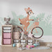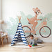 Ukrasite sobu svog beba s ovim šarmantnim dječjim tapetama koje prikazuju simpatičnog jelenčića kako vozi bicikl. S cvjetnim šljemom i košarom punom lijepog bilja, ovaj uzorak evocira radost i avanturu. Zabavan dekor koji potiče maštu i istraživanje.