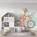 Papier de parede za bebe | Mali jelen na biciklu s cvijećem