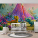 Admirez les dinosaures en pleine aventure au pied d'un volcan en éruption, entourés d'une végétation luxuriante. Idéal pour stimuler l'imagination et créer un espace de jeu dynamique et immersif.