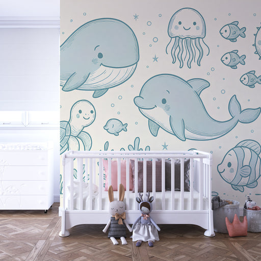Ove tapete hvataju svu ljepotu vodenog svijeta kroz nježne i sanjive nijanse. Gradacije umirujućih plavih, koralji u pastelnim bojama i delikatnost zlatnih riba spajaju se kako bi stvorili poetski i obavijajući dekor. Svaki detalj, inspiriran morskim svijetom, poziva na kontemplaciju i trenutno prenosi dijete u svijet ispunjen magijom i spokojem.