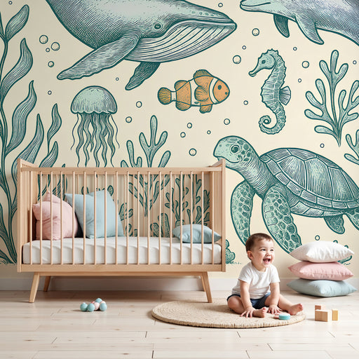 Transformirajte dječju sobu u pravo podvodno kraljevstvo s ovim morskim tapetama. Kombinirajte ih s dodacima inspiriranim oceanom, jastucima u obliku školjki i prigušenim svjetlima koja podsjećaju na svjetlucanje vode. Ovaj jedinstveni dekor potiče maštu i stvara prostor pogodan za bijeg, gdje svaka noć postaje izvanredno putovanje na dno mora.