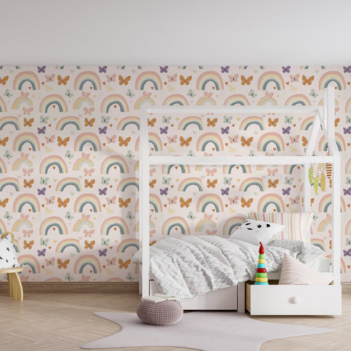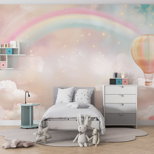 Hozzon létre álmodozásra és kreativitásra ösztönző légkört ezzel a szivárványos tapétával. Kombinálja természetes bútorokkal, puha párnákkal és puha szálú kiegészítőkkel, hogy kiemelje ezt a bohém és nyugtató hangulatot. Egy tér, ahol gyermeked elkalandozhat, történeteket találhat ki, és puhaságban és varázslatban növekedhet.