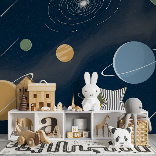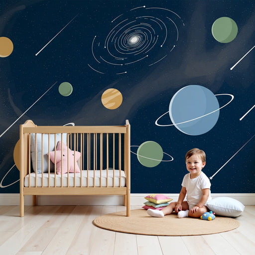 KidsWallUtaztassa el gyermekét egy intergalaktikus kalandra ezzel a gyermekszoba tapétával, amely lenyűgöző univerzumot ábrázol vibráló bolygókkal és rejté...