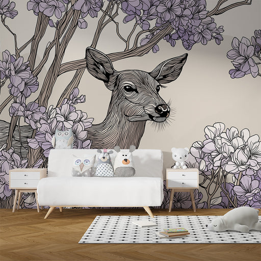 Afficher tous les détailsNursery room wallpaper | Delicate deer amidst tulips and daisies
