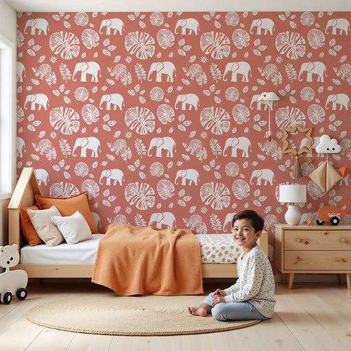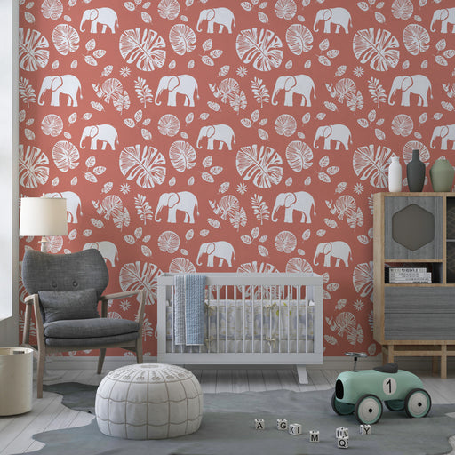 Gyermekszoba tapéta mintákkal | Elegáns elefántok terrakotta háttéren
