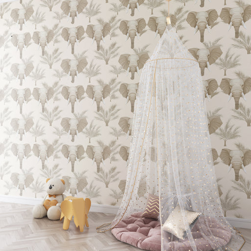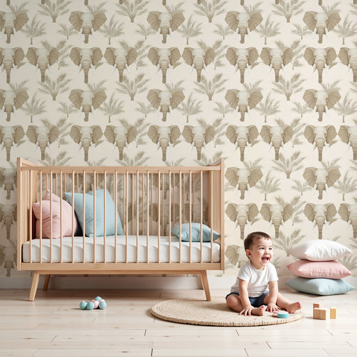 Gyermekszoba tapéta mintákkal | Elefántok fenséges krémszínű háttéren