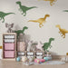 Minden részletet gondosan úgy terveztek, hogy serkentsék a kis kalandorok képzeletét. A nyugtató színek és a stilizált formák modern jegyeket adnak, miközben hűek maradnak a dinoszauruszok lenyűgöző világához. Ez a dekoráció felfedezésre és felfedezésre ösztönöz, miközben meleg és barátságos hangulatot teremt.