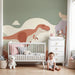Újragondolhatja gyermekszobáját egy igazi kalandterületté ezzel a gyermek tapétával, amelyen egy vidám t-rex látható egy stilizált tájon. Az enyhe formák és pasztell színek vidám és nyugtató hangulatot teremtenek, tökéletesen serkentve a kis felfedezők képzeletét.