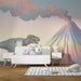 Gyermekszoba tapéta | Tiranózaurusz és színes vulkán egy ősi tájban
