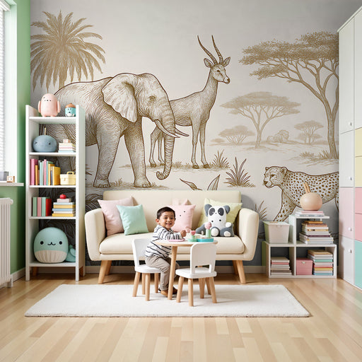 Egy nyugtató és mesés környezetet álmodik gyermekének? Párosítsa ezt a tapétát világos fa bútorokkal, természetes árnyalatú textíliákkal és néhány arany elemmel, hogy folytassa ezt a mennyei hangulatot. Ez az egyedi dekoráció kíséri majd gyermekének éjszakáit és játékait, átalakítva a szobáját egy valódi álom és menekülés univerzummá.