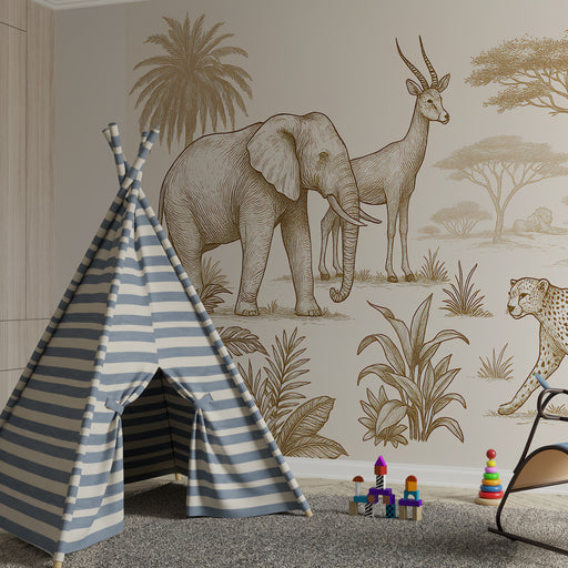 Minden részletét ennek az gyerekszoba tapétának arra tervezték, hogy érzetet adjon a könnyedségről és költészetről. Az elefántok, lágy és megindító vonalaikkal, kecsesen lebegnek a csillogó kis csillagokkal tarkított égbolton. A pasztell árnyalatok, finom aranybarna, égkék és púder rózsaszín keveréke, lágy és megnyugtató fényt áraszt. Az akvarell hatású festészet finomságot és eleganciát ad ehhez a varázslatos dekorhoz, ideális az imagináció ösztönzésére és a nyugalom érzetének kialakítására.