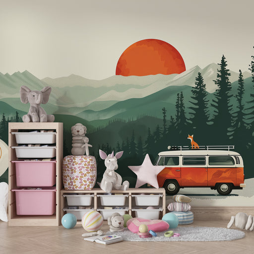 Gyerekszoba tapéta | Retro kaland a naplementében a furgonban