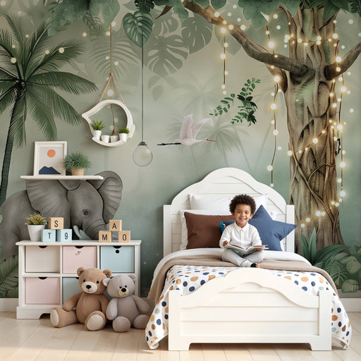 Baba szoba tapéta | Játékos elefántok és varázslatos dzsungel