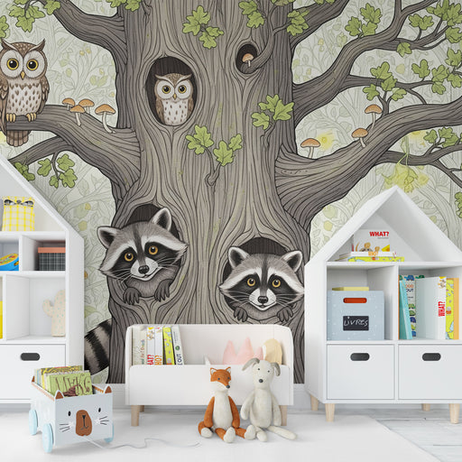 Afficher tous les détailsGyermekszoba tapéta | Tölgy és baglyok az erdőben