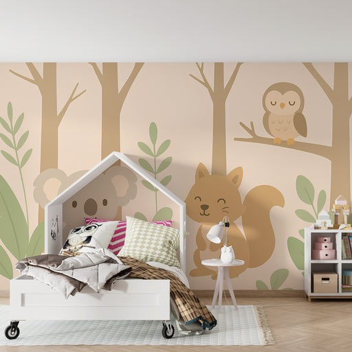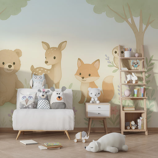 Gyermekszoba tapéta | Erdő állatai színes és természetes érintésekkel