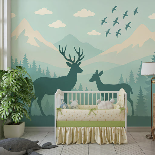 Afficher tous les détailsGyermekszoba tapéta | Varázslatos erdő szarvasokkal és hegyekkel