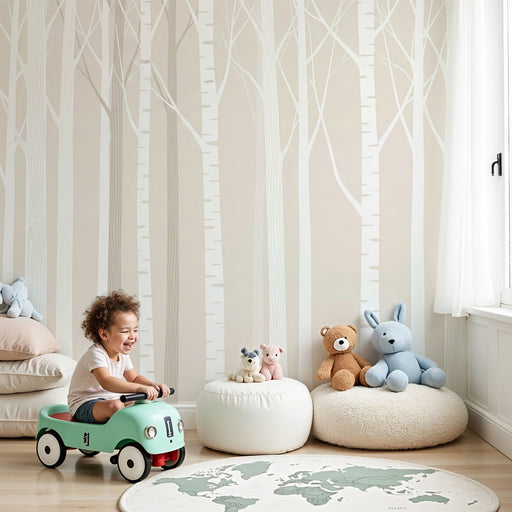 KidsWallAjándékozza meg gyermekét egy utazással a természet szívébe ezzel a baba szoba tapétával, amely egy lágy fényben fürdő nyírfás erdőbe kalauzolja el...