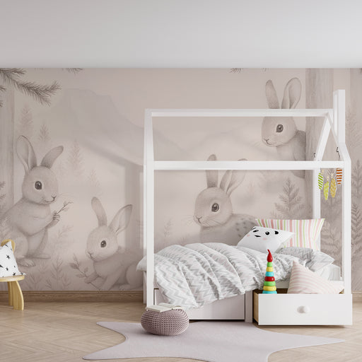 KidsWallAlakítsa át kisgyermekének szobáját ezzel a gyerekszoba tapétával, amely aranyos nyulakat ábrázol egy csendes erdőben. Egy finom tájban ezek a fino...