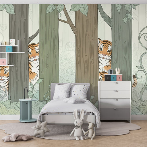 KidsWallMergeljen el egy rejtélyekkel teli kalandok világába ezzel a gyermek tapétavel, amely tréfás tigriseket ábrázol, akik az fák között rejtőznek. Egy ...