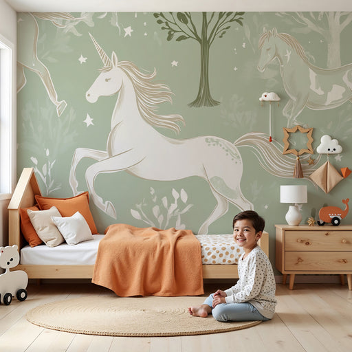 Mélyedj el egy elbűvölő világba, ahol magasztos unikornisok szabadon száguldoznak a csillagos ég alatt, buja természet ölelésében. Ez a gyermekszob...