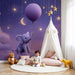 Nursery room wallpaper | Cute elephant with balloon under a starry sky