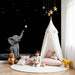 Alakítsa át a baba szobáját egy igazi éjszakai égboltává ezzel a baba tapétával, amely egy aranyos elefántot ábrázol, amint csodálja a csillagokat. Egy minimalista környezetben ez a megható elefánt kíváncsi pillantása álmodozásnak tűnik az univerzum csodáiról.