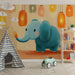 A pasztell színek és a finom minták meleg és nyugtató hangulatot teremtenek, tökéletesen alkalmasak kisbabája álmaira. Minden apró részlet, az elefánt nagy füleitől a lebegő lámpásokig, gondosan megtervezett, hogy serkentsék a képzeletet és békességet hozzanak.