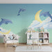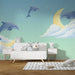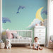 Varázslatos világot teremthet a babaszobában ezzel a baba tapétával, amely vidám delfineket ábrázol egy csillagos ég alatt. Ezek a kecses tengeri lények puha felhők és arany holdak között ugrándoznak, álomszerű és nyugtató hangulatot teremtve.